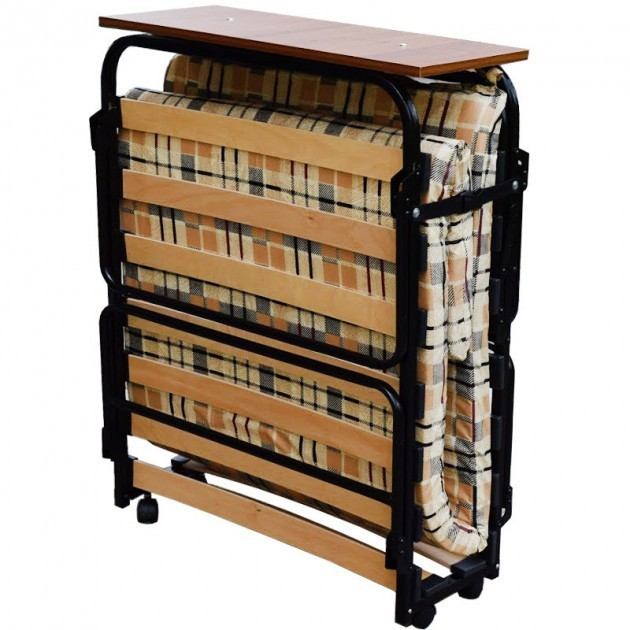 Ортопедичне розкладне, одномісне ліжко на ламелях з матрацом, з дерев'яним бильцем, яке служить підголівником у розкладеному вигляді та поличкою-тумбочкою у складеному вигляді.
