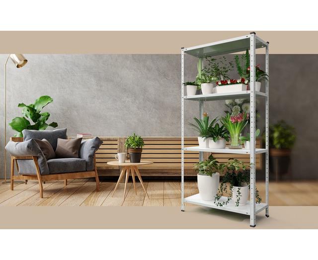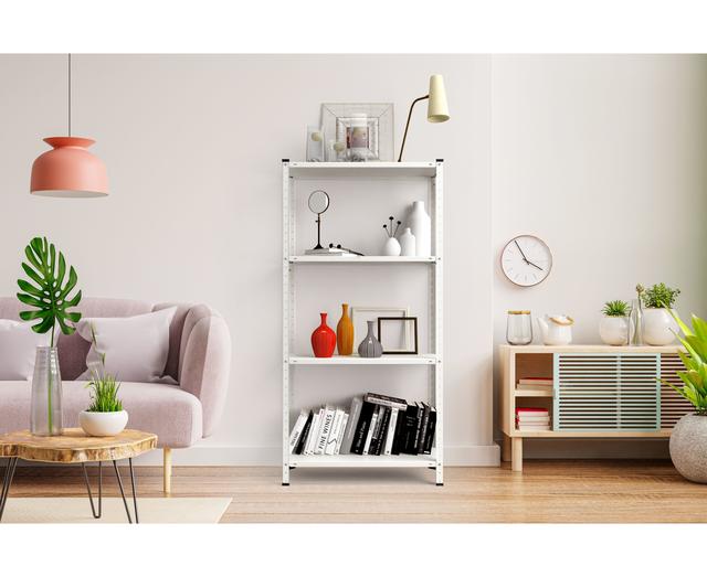 | Тип призначення | Стелаж металевий розбірний на болтах 1500х750х300, 4 полиці фарбований метал 35кг/полицю Білий Стелаж лофт |