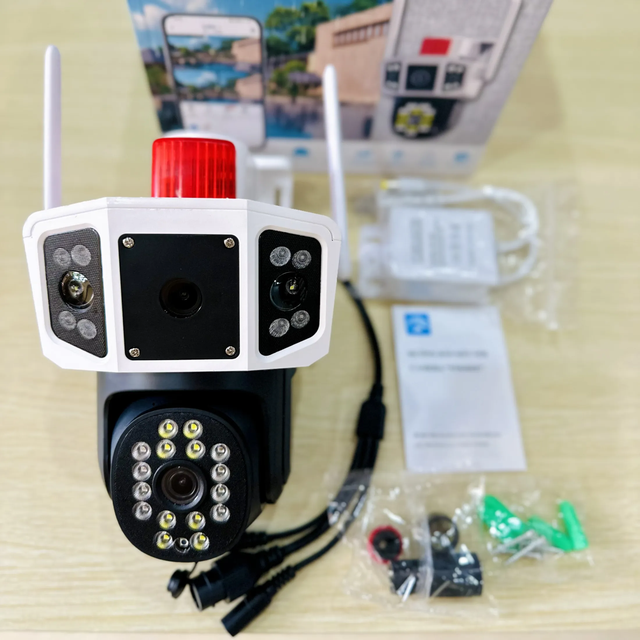 Ip WiFi камера вулична поворотна 6Mp (3+3Мп) YC101 2 незалежні обʼєктиви з віддаленим доступом датчик руху нічне бачення